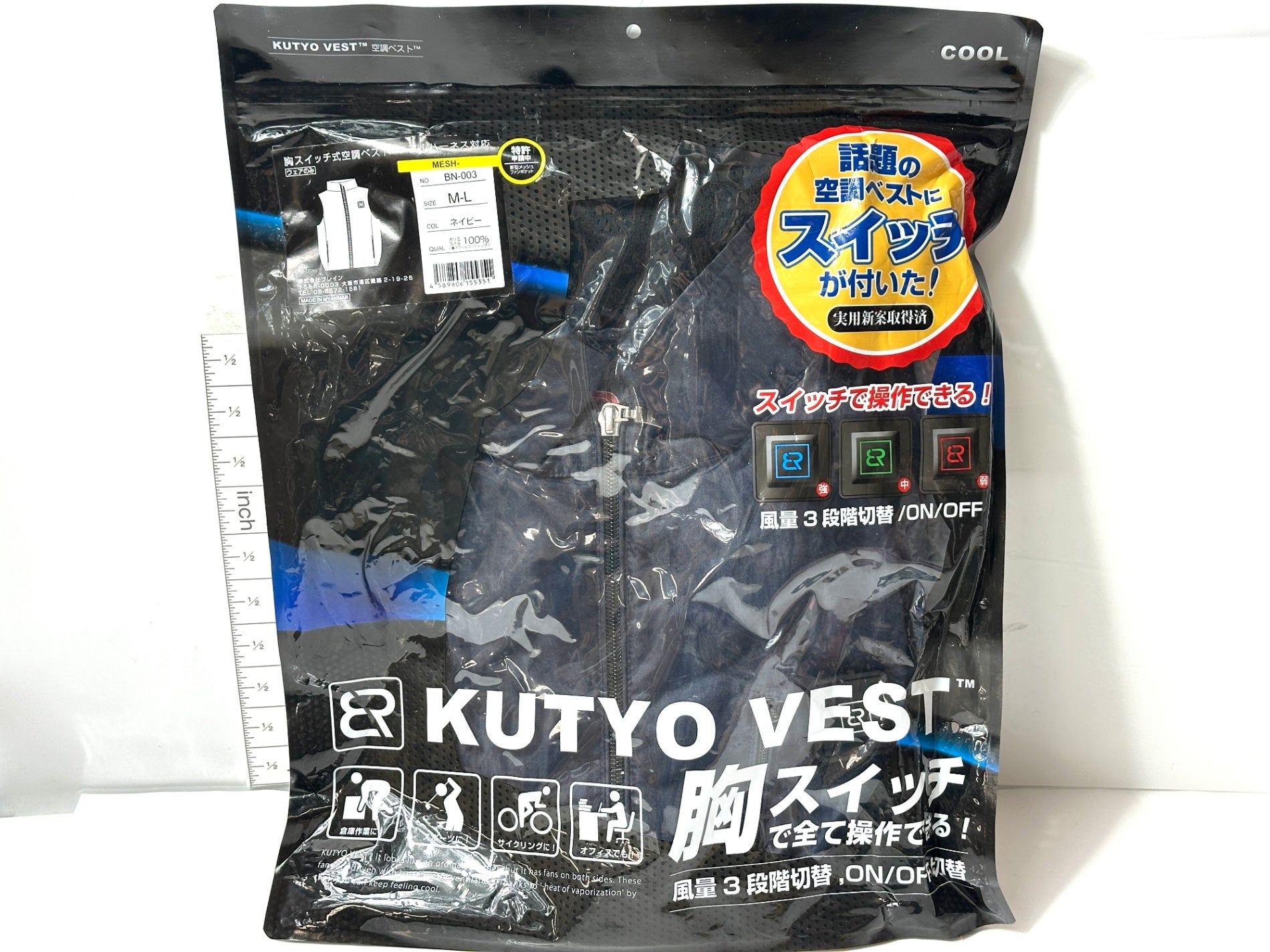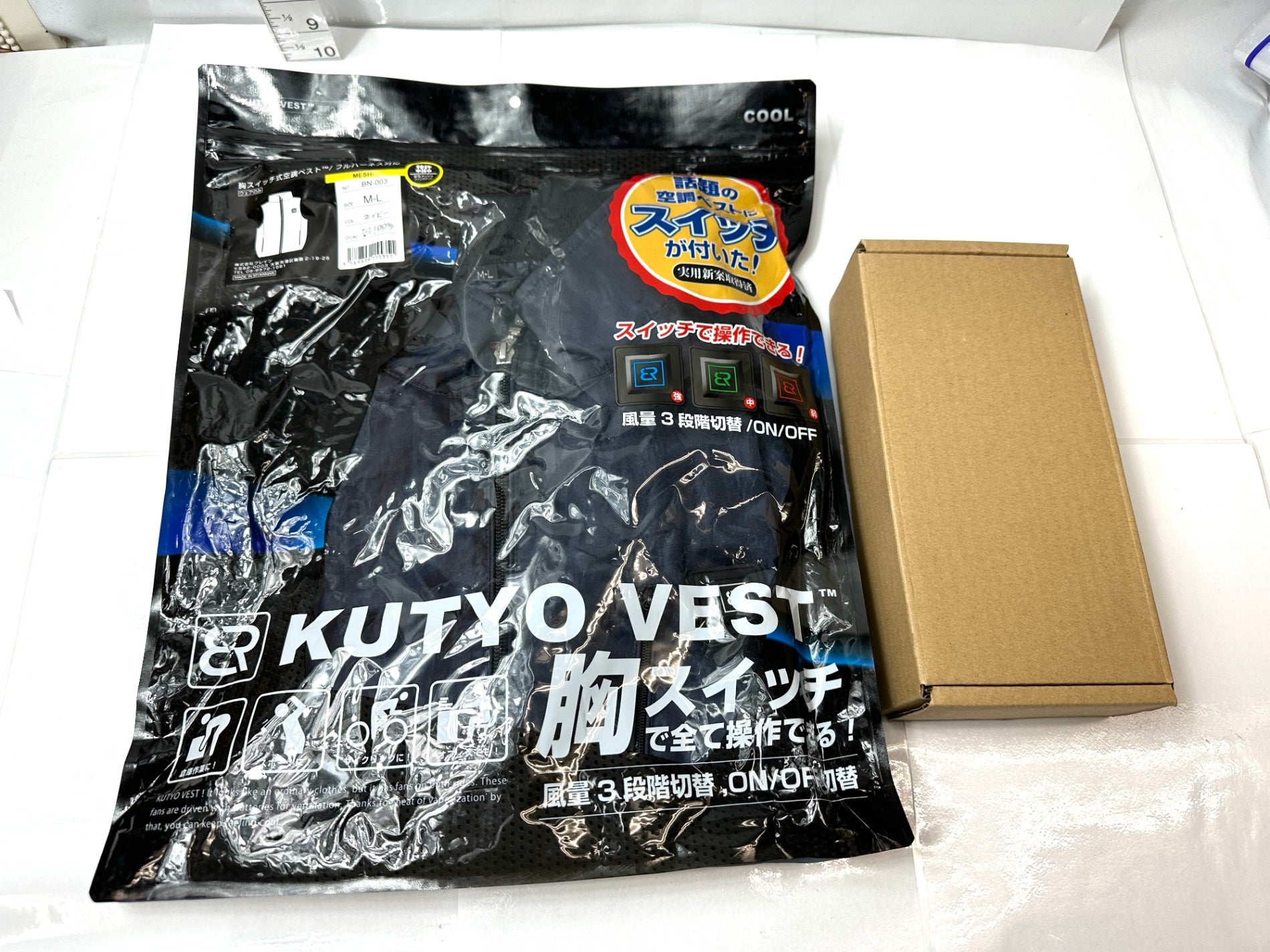 BRAIN ブレイン 胸スイッチ式空調ベスト フルハーネス対応 空調服 ネイビー サイズ:M-L 風量 3段階切替&ファン 9/16